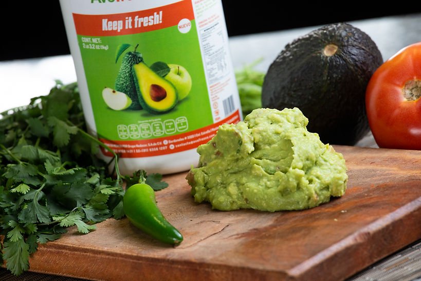 para frutas , verduras y guacamole que retrasa la oxidación y alarga la vida de anaquel de los mismos.